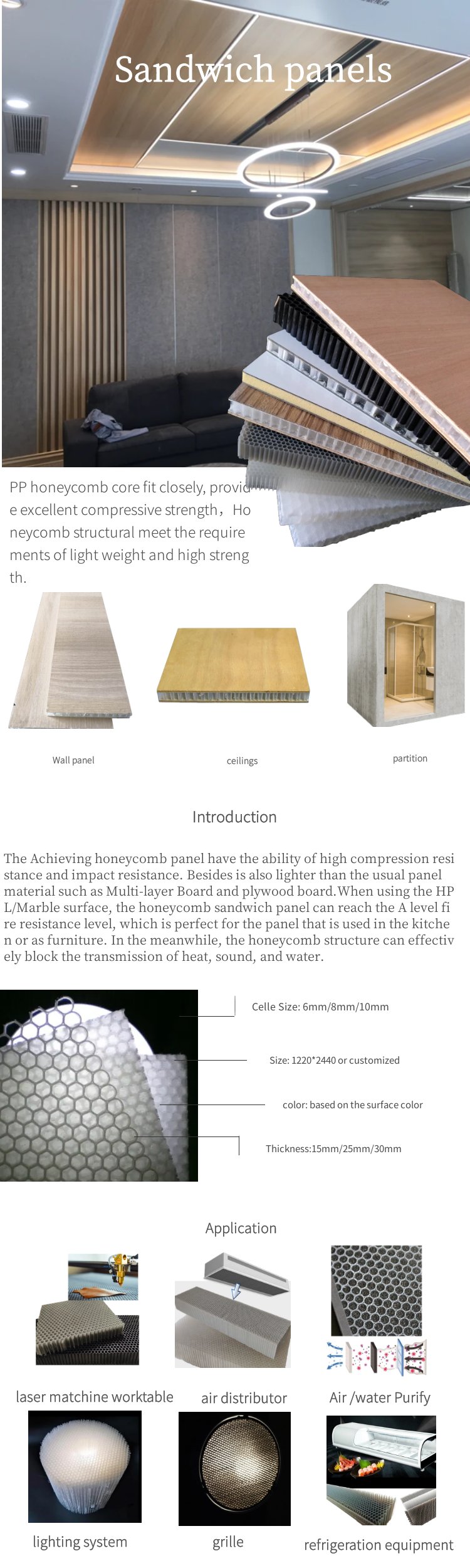 PP honeycomb sandwich board, the PP honeycomb core and hard light stronger, higher rigidity, waterproof, and eco-friendly. lightweight, insulation, sound reducing, waterproof, increase rigidity, easy install. Its resistance to water and moisture, combined with its lightweight nature,