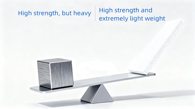 This structure transforms the "bulk loading" of a solid panel into "structural loading," removing material from the central areas that bear little or no stress. Consequently, while weighing only a fraction of a solid panel of the same size, it provides comparable or even superior strength performance.