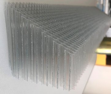 Qingdao Achieving has been committed to producing environmentally - friendly and recyclable PC through-hole honeycomb cores for nearly two decades. The high-quality brand-new PC raw materials it selects are sourced from Sinopec, and these materials exhibit excellent performance in aspects such as recyclability, durability, heat resistance, chemical resistance, environmental friendliness, energy conservation, and recyclability. The aperture range of our PC honeycomb panels is: 3.5mm-8mm, the regular size of PC honeycomb panels is: 1220mm*2440mm, and the thickness of PC honeycomb panels is 5mm-100mm (the above can be customized according to customer requirements). In addition to customizing normally through-hole honeycomb core strips, we also provide the angles of honeycomb tubes customized service and cutting services for bevelled honeycomb strips Standard cell sizes are 3.5 and 8mm, and thicknesses range from 5 to 500 mm.